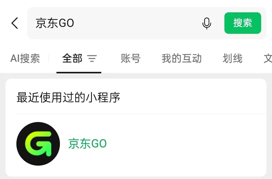 在【京东app】或者【微信搜索栏】搜索“京东GO”,点击进入小程序。