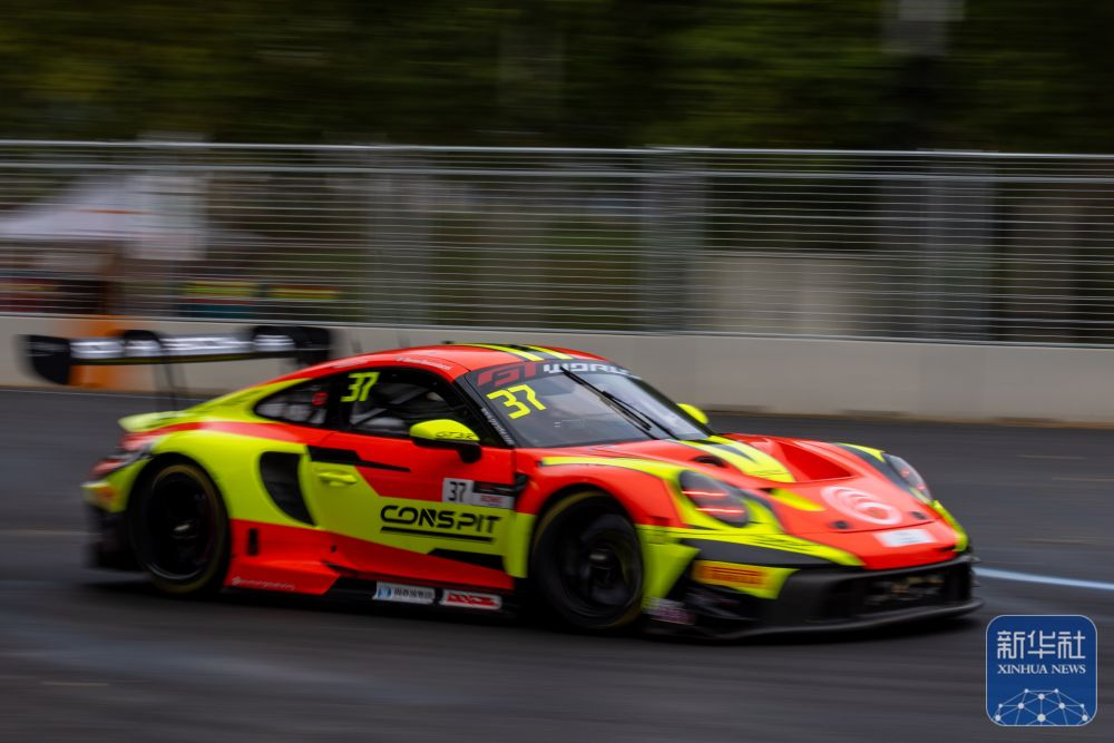 ↑ Elegant Racing Team车队车手廖力嘉(中国澳门)/伦格尔(德国)在排位赛中。 新华社记者 鞠焕宗 摄