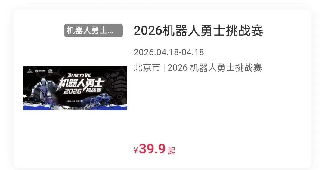 开票啦!2026机器人勇士挑战赛4月18日超燃上线,一起来看硬核闯关
