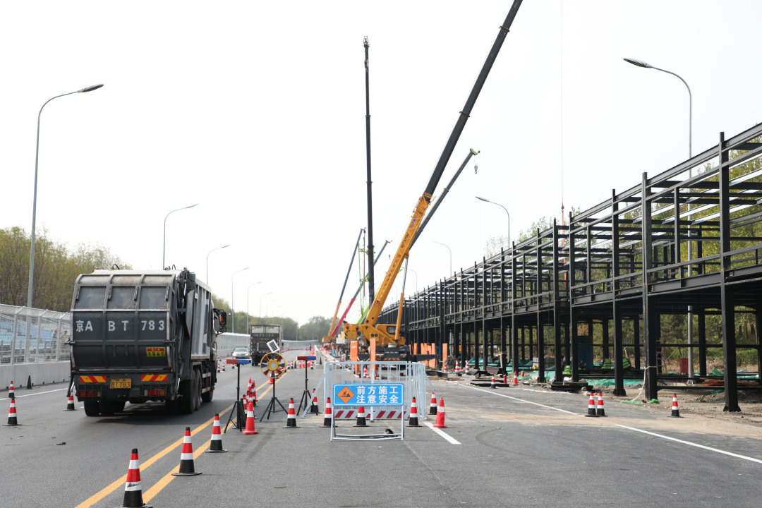 赛道建设兼顾工程效率与赛事周期,采用分阶段策略确保了赛事与城市运行的无缝衔接。工程自7月22日启动,严格分为前期准备、赛前施工、比赛保障和赛后修复四个阶段。赛前施工是关键期,51个工作日内完成三个区域的协同作业:1区(经惠西路等)分幅分段施工,2区(科创十七街)采用半幅交替推进,3区(通惠干渠路等)同步优化路面结构。9月下旬完成初验后,工程暂停以全力保障赛事。待10月20日赛事结束,项目团队将用28天恢复绿化带和交通标线,预计于11月下旬完成验收。